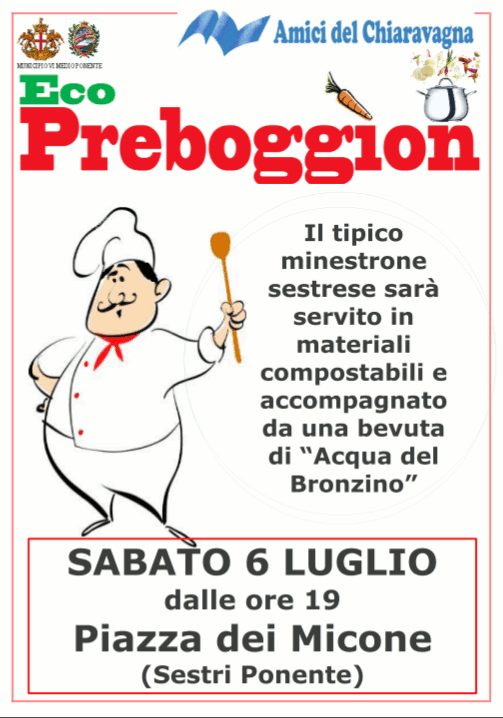 | - SABATO 10 LUGLIO dalle ore 19: Eco-Preboggion di S.Alberto in piazza Tazzoli a Sestri |